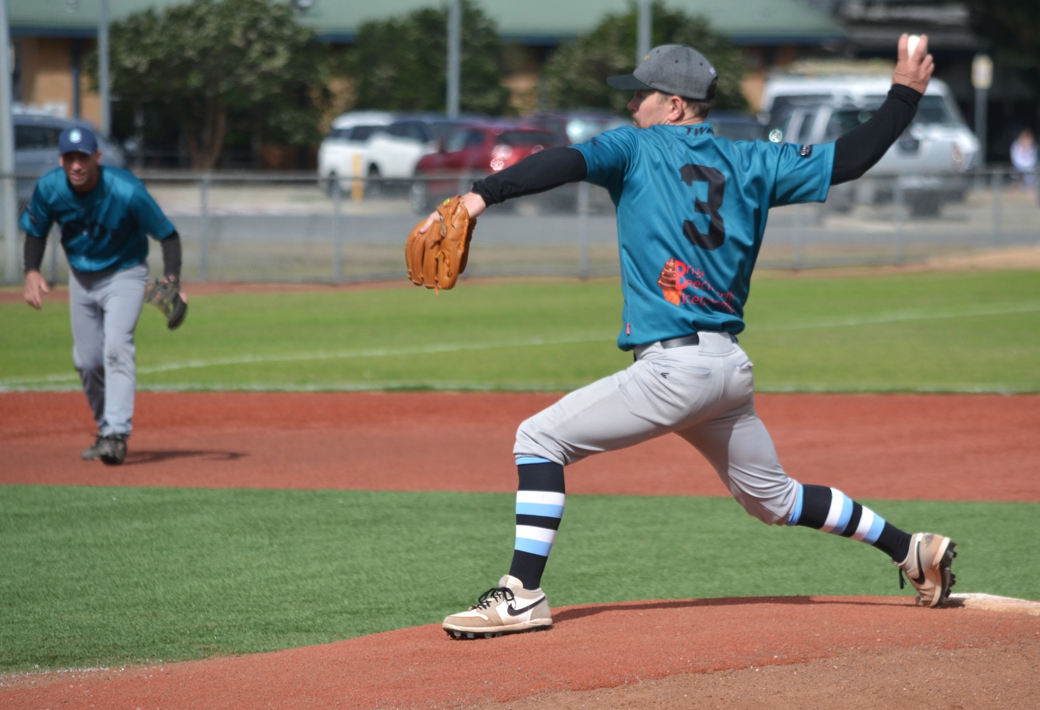 Chadwick pitching. Thanks to Kingsley Collins for the photo